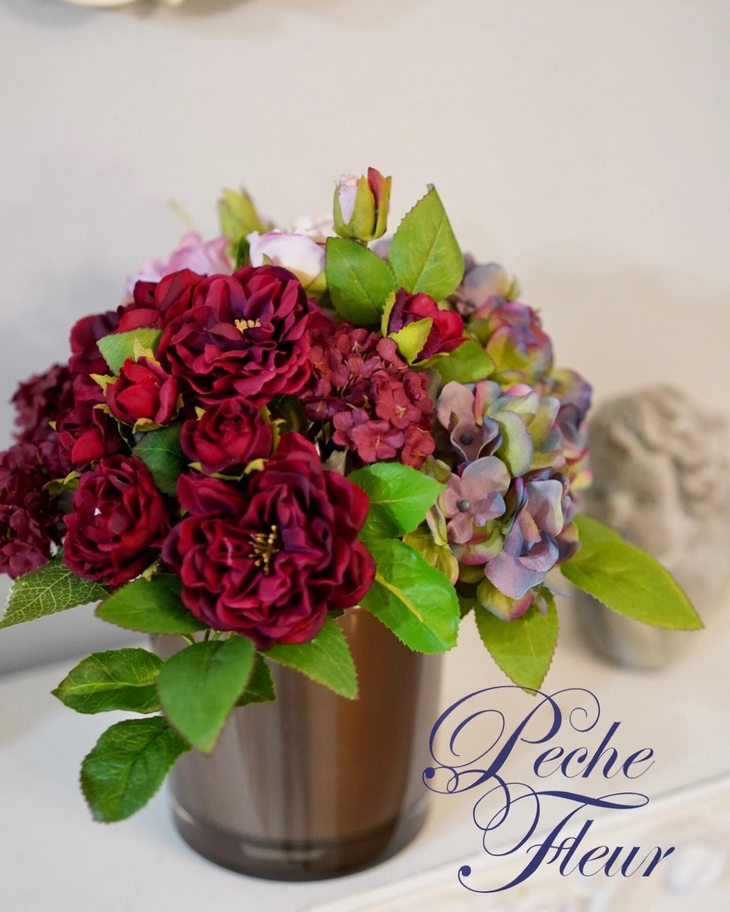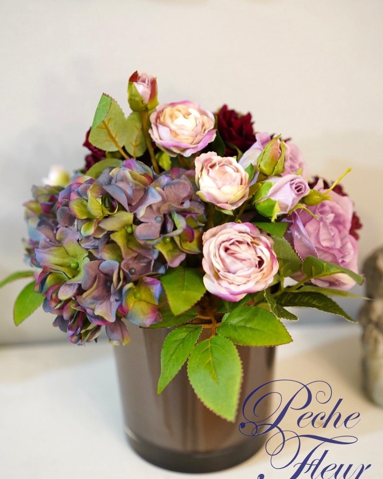 アーティフィシャルフラワーでお作りした、モーヴカラーのアレンジ。