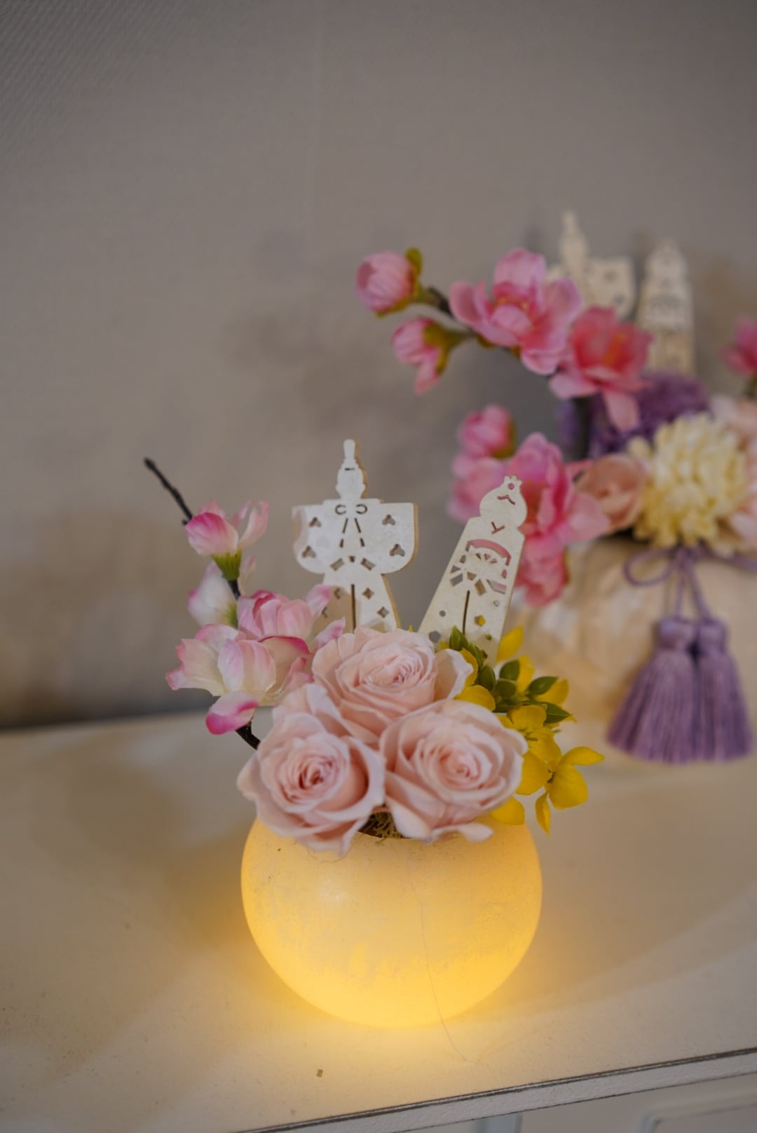 ひな祭り LEDベースアレンジ プリザーブドフラワーとアーティフィシャルフラワーアレンジ(送料無料)