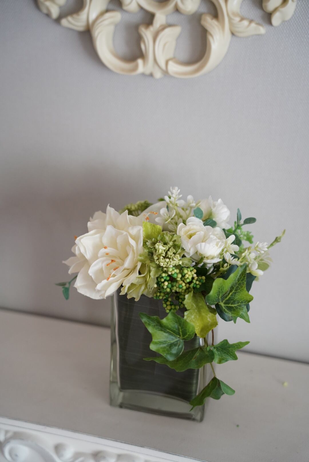 アーティフィシャルフラワーでお作りした、モダンなアレンジ。