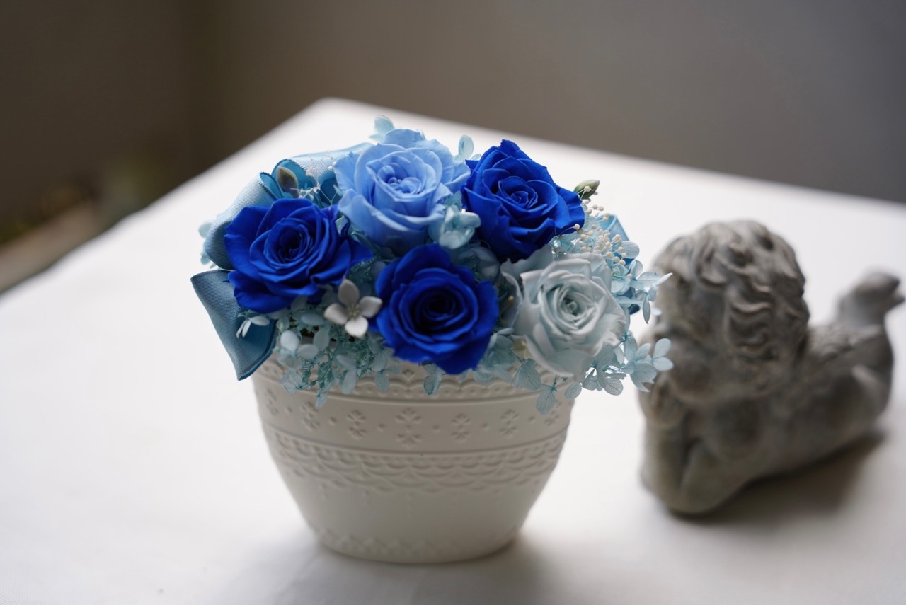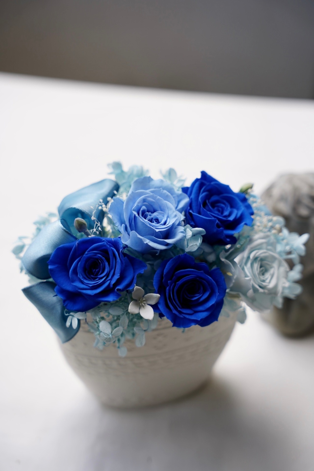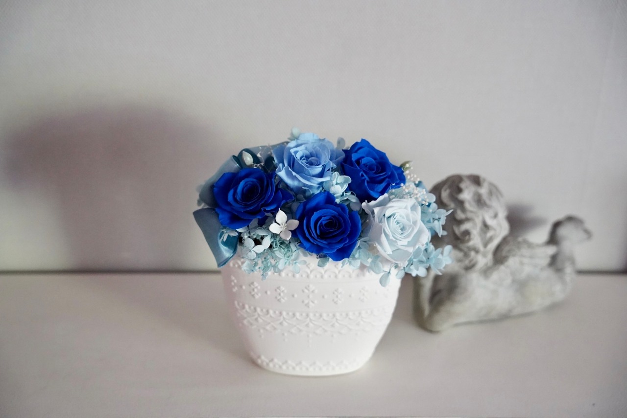 ブルーローズを使ってアレンジ。プリザーブドフラワーアレンジ。。プレゼントにもお勧め!